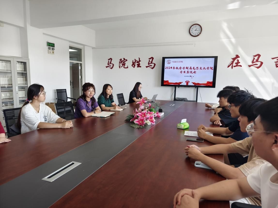 座谈会上,师生交谈气氛热烈,学生围绕本学期所学习的思想政治理论课展开了深入交流,提出了在学习思政课中遇到的困惑。有的学生提出,在马克思主义基本原理这门课程的学习过程中,感觉对概念的理解比较困难,抓不住学习的重点,但又感觉处处是重点;有的学生提出自身的理论基础比较弱,希望老师用更为通俗易懂的语言和文字来帮助同学们加深对知识点的理解;有的学生建议多举办一些更具针对性的考研辅导。