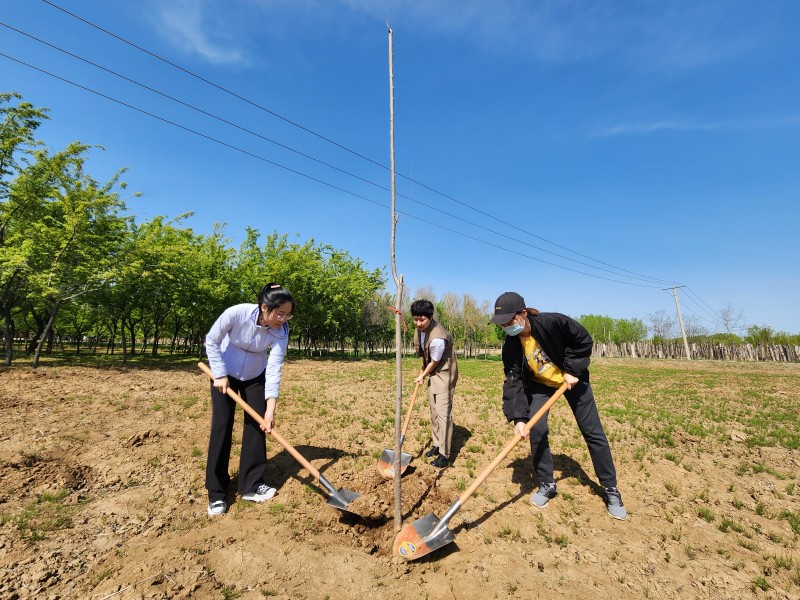 共建仪式后,青年苗木中心的讲解员带领师生参观沈阳园林植物科普馆,并进行细致讲解,之后共同游览青年苗木中心“精品展示园”。在师生植树活动中,大家积极踊跃、热情高涨,在工作人员的指导下,师生共同努力成功栽种树苗30棵。