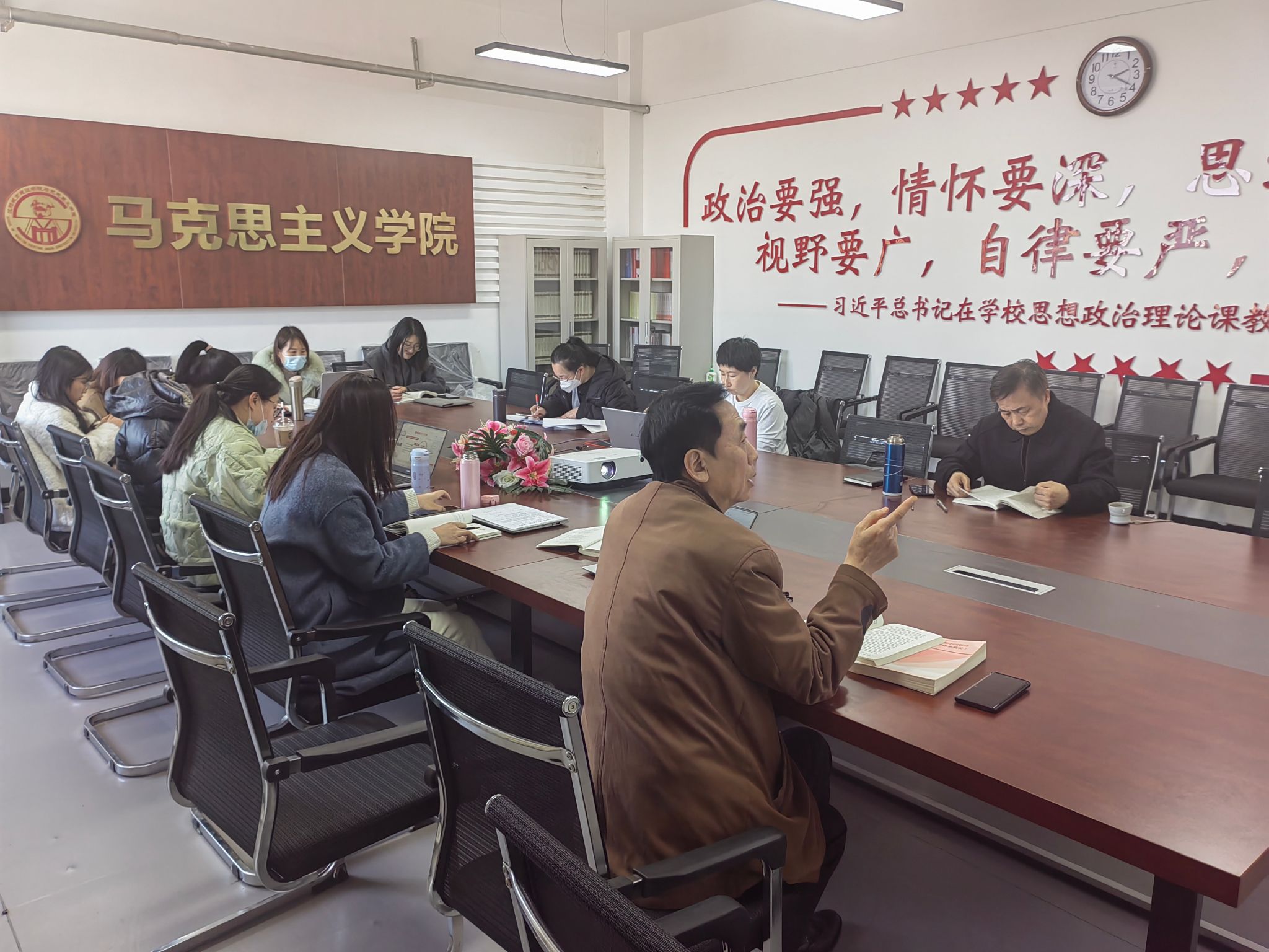 最后,高飞老师对本次集体备课进行总结,并对近期工作进行安排:社会实践方案抓紧时间上交,注意期末题库的上交时间,请各位任课教师抓紧时间检查各章题库。