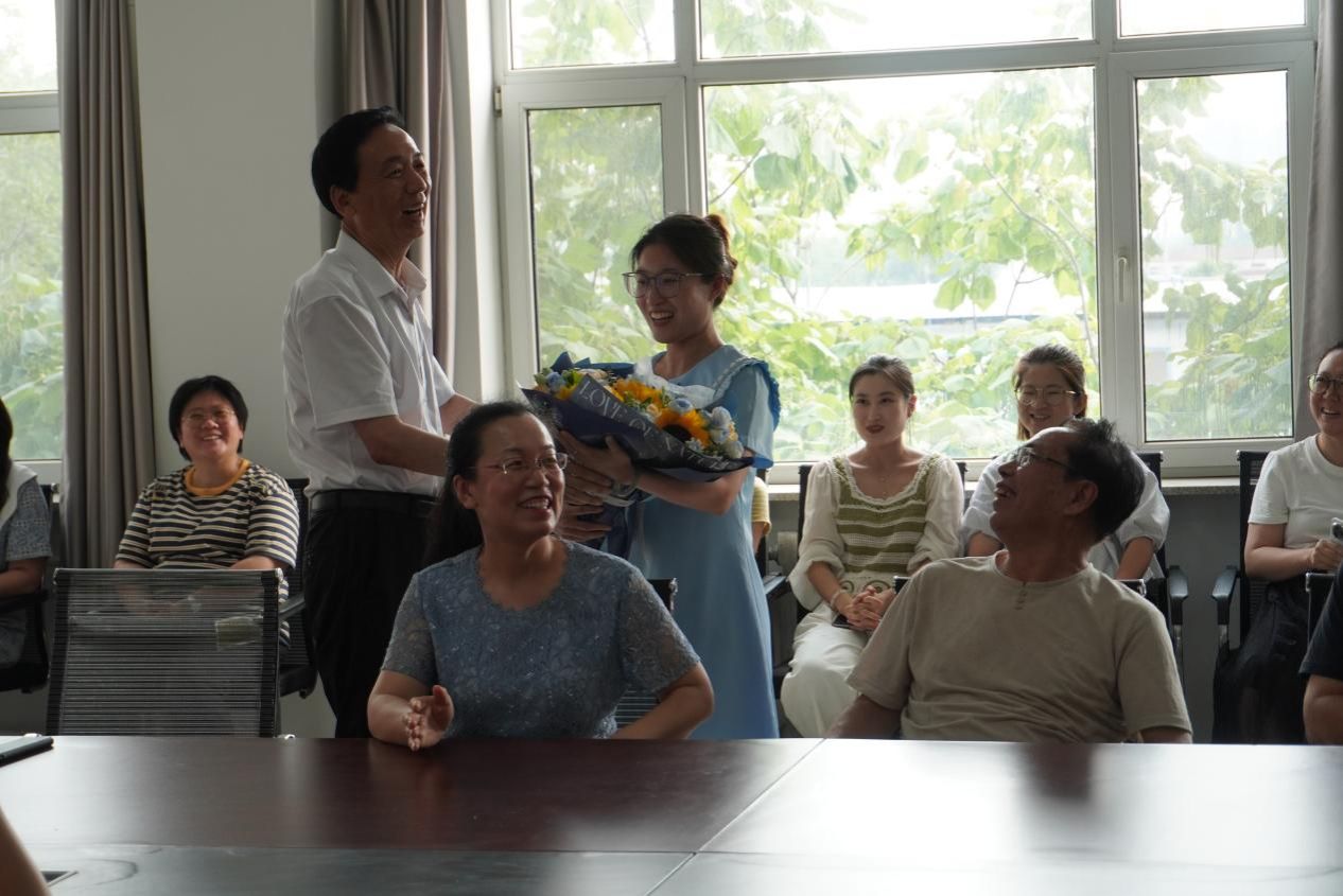 青年教师代表向退休教师献花,并表示将以朱卫东教授为榜样,传承育人初心。最后,全体教职工合影留念,用镜头定格这一美好时刻。