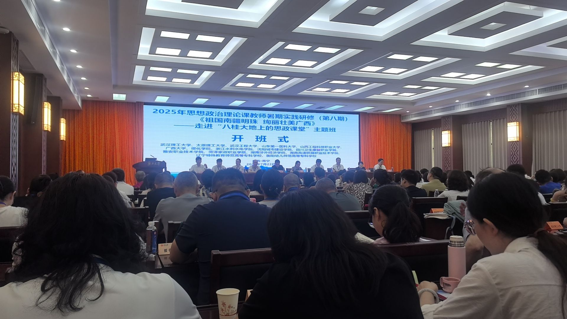 本次研修活动精心设置了专题讲座、现场教学、实地考察等多个环节。开班仪式上,广西壮族自治区新闻出版局原党组副书记、副局长黄健以《祖国南疆明珠绚丽壮美广西——行走在八桂大地上新闻叙述的思政课堂》为题作专题讲座。他系统介绍了广西深厚的红色文化底蕴、秀美的生态保护画卷、丰硕的产业发展成果及独特的沿海区位优势,为教师们深入认知广西奠定了坚实基础,也为后续实践研修筑牢了思想根基。