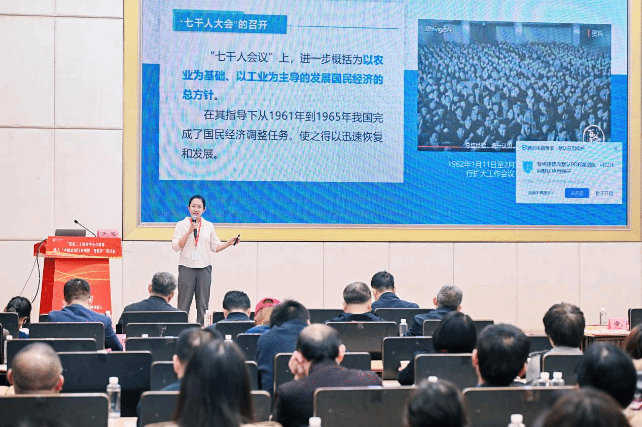 近日,由教育部高校思政课教学指导委员会“中国近现代史纲要”课分教学指导委员会(以下简称“纲要”课分教指委)主办的“党的二十届四中全会精神融入‘中国近现代史纲要’课教学”研讨会在重庆西南政法大学召开。我校思政课教师于瑶受邀参会,与天津大学、西南政法大学等6所高校的教师一同,作专题教学报告。